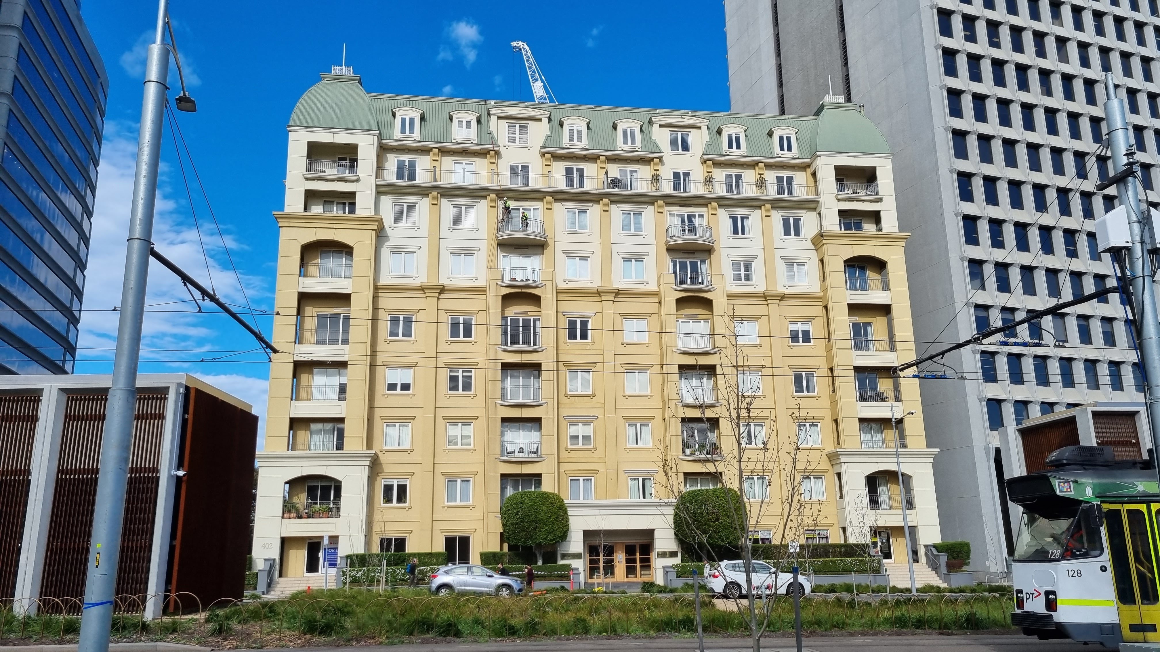 Avello Group was engaged to deliver a comprehensive façade remedial and repainting project at 400 St Kilda Road, Melbourne, a prominent strata / owners corporation building exposed to harsh environmental conditions including wind, rain, pollution, and coastal salt effects.